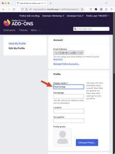 - شما به سایت Mozilla Add-ons هدایت میشوید. در صورتی که تاکنون این کار را انجام نداده باشید، باید یک نام نمایشی و پروفایل ایجاد کنید.
