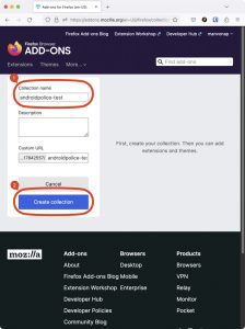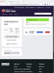 - آدرس اینترنتی مجموعه افزونه شخصیتان را یادداشت کنید. در این مثال، آدرس https://addons.mozilla.org/en-US/firefox/collections/17842557/androidpolice-test/edit/ است.
