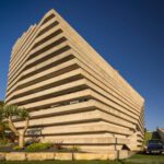 نمای ساختمان به شکلی است که گویی سنگفرش منظمی را حول یک محور چرخانده و به دور ساختمان کشیده اید. این شرایط شکل تجسمی جدیدتری ایجاد می کند که قرار گرفتن در معرض نور خورشید را کاهش می دهد و گردش هوا را در مناطق مختلف ساختمان میسر کند.