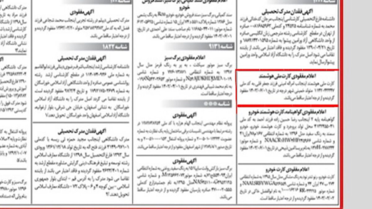 • 6. نحوه ثبت آگهی مفقودی کارت ملی در روزنامه‌ها