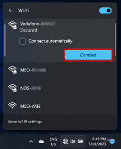 - روی شبکهای که میخواهید به آن متصل شوید کلیک کرده، سپس روی Connect کلیک کنید.