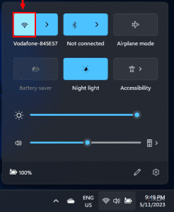 - روی دکمه Wi-Fi کلیک کنید تا رنگ آن تغییر کند.