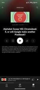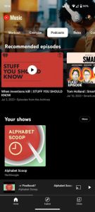 نمایش صفحات شبیه آلبوم ها و لیست های پخش آثار هنری و لیستی از قسمت ها و همچنین تاریخ انتشار و وضعیت پخش است. برای مشاهده توضیحات کامل با قابلیت ذخیره قسمت برای مشاهده در آینده تحت عنوان Save episode for later با استفاده از دکمه بوکمارک و دانلود می‌شود.