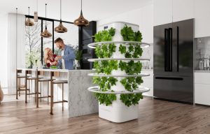 این دستگاه، یک سیستم هیدروپونیک خودکار است که آب غنیشده با مواد مغذی را به داخل برج پمپ میکند و آن را روی گلدان های گیاه بدون خاک که در محل های رشد اطراف واحد قرار داده شده است، می ریزد.
