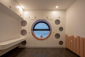 فضای داخلی خانه Chic Vid در پنج طبقه گسترده شده است. دکور سرتاسر با سلیقه و جمع و جور است و مبلمان به دقت چیده شده اند تا فضای باریک را زیباتر کنند.
