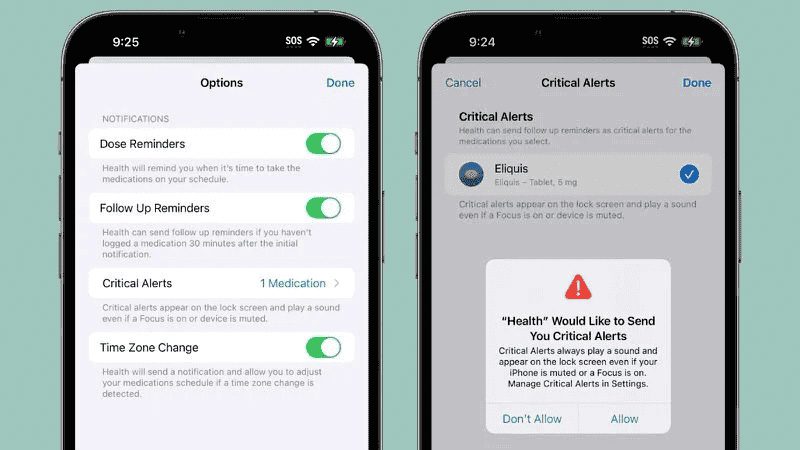 اپل این ویژگی را با افزودن ویژگی هشدارهای حیاتی برای داروهای مهم بهبود می بخشد. بنابراین حتی اگر آیفون قفل شده یا در حالت فوکوس باشد، این اعلان روی صفحه قفل و پخش صدا ظاهر می شوند.