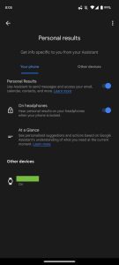 توانایی پاسخدهی دستیار به درخواستهای مطرحشده از سوی هدفون های بدون پشتیبانی از Google Assistant (یعنی AirPods به جای Pixel Buds) هنگام قفل بودن دستگاه، اکنون توسط Assistant Settings > Personal results > On headphones کنترل می شود (طبق تصویر دوم).