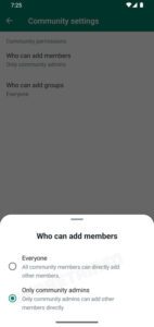 یکی دیگر از ویژگیهای آتی واتساپ، امکان افزودن اعضا به کامیونیتی در واتساپ است. صاحبان کامیونیتی میتوانند انتظار داشته باشند که بین همه و فقط مدیران جهت اجازه افزودن اعضای جدید، سوئیچ کنند. این تنظیم را میتوان در صفحه تنظیمات پیدا کرد.