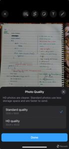 واتساپ اکنون دارای یک دکمه HD ثابت بالای عکسهای با کیفیت بالا در صفحه انتخاب، قبل از ارسال است. وقتی تصویر بزرگتر از اندازه استاندارد ۱۲۰۰x۱۶۰۰ پیکسل است، دکمه HD نمایش داده میشود تا کیفیت اصلی برای ارسال انتخاب شود. این ویژگی در حال حاضر به صورت گسترده برای تمام کاربران در دسترس است.
