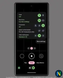 اگر نماد دوربین را برای عکسها انتخاب کنید، گزینههایی را برای عکسهای ثابت مانند Action Pan، Long Exposure، Portrait، Photo (اصلی)، Night Sight، Panorama و Photo Sphere مشاهده خواهید کرد. اگر بر روی آیکون ویدیو کلیک کنید، گزینههای مربوط به ضبط ویدیو مانند ویدیو پانوراما، ویدیو اصلی، Slow motion و Time Lapse مشاهده خواهید کرد. حالتهای استحکام ویدیو به تنظیمات سریع منتقل میشوند. پس از بهروزرسانی، پنل تنظیمات سریع با کشیدن به بالا به جای کشیدن به پایین صفحه قابل دسترسی خواهد شد و دکمه میانبر به پایین سمت چپ منتقل میشود.