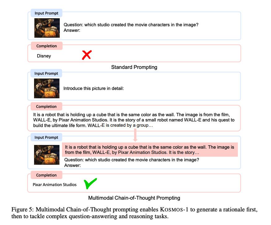 به گزارش تکناک، محققان مایکروسافت مدل هوش مصنوعی چندوجهی Kosmos-1 را معرفی کردند. تجزیه و تحلیل محتوای تصاویر، حل معماهای بصری و تشخیص متون بصری از قابلیت های این مدل است. علاوه بر این، این مدل می تواند تست های هوش بصری را انجام دهد و دستورالعمل های زبان طبیعی را درک کند.