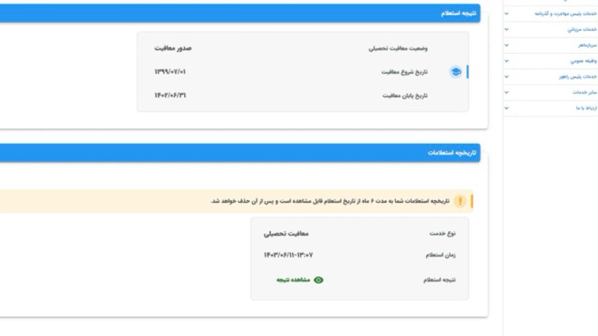 - استعلام وضعیت گذرنامه (انقضا، ممنوعالخروجی، وضعیت فعلی)