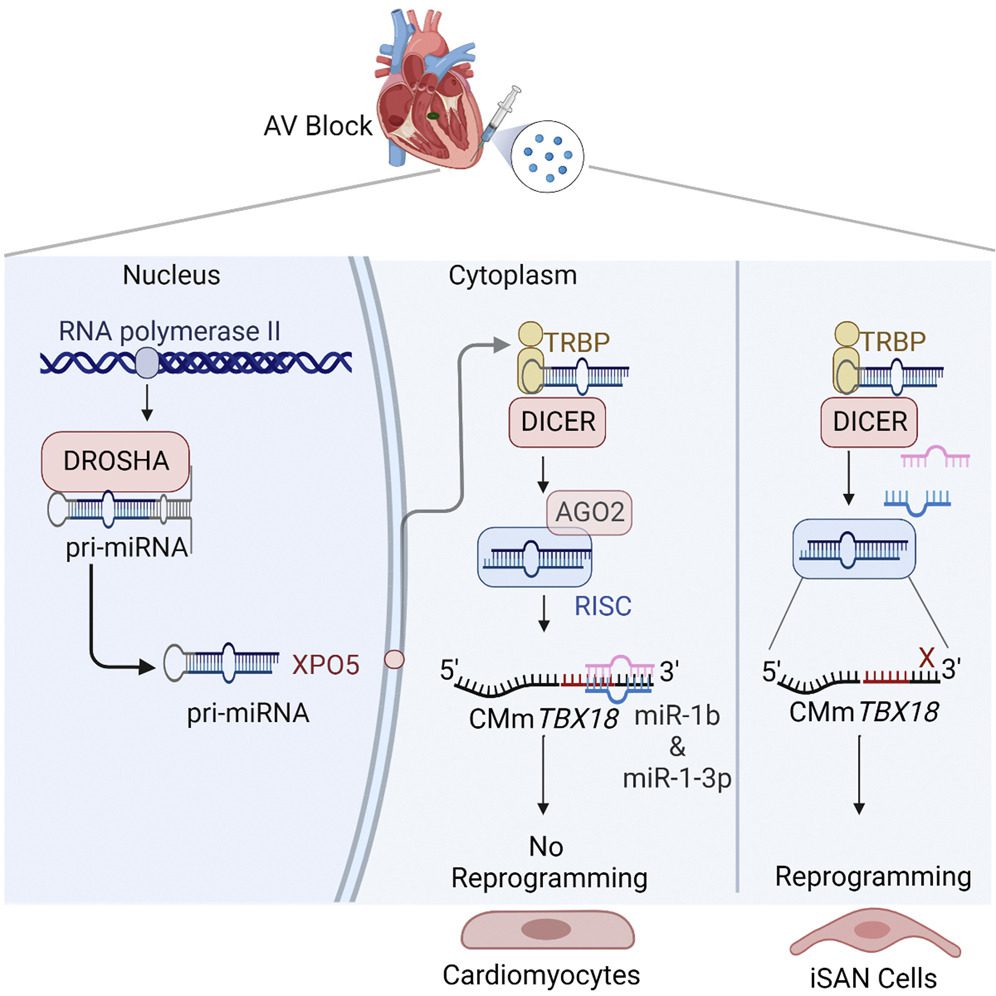 اثر سرکوبکنندهی microRNAها باید از بین می رفت.محققان microRNA های دقیق درگیر را شناسایی کردند و از آنتاگونیست های شیمیایی برای سرکوب microRNA ها استفاده کردند. این مسئله کمک بسیار زیادی کرد و شدت پروتئین TBX18 را افزایش داد و ضربان قلب را تثبیت کرد.