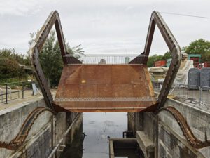 وقتی نیاز به عبور قایق باشد، دندانههای فولادی نصب شده در انتهای پل به آن اجازه میدهند که روی ریلهایی که در دیوارههای بتنی در هر دو طرف نصب شدهاند، بچرخد، فراهم کردن فضای بیشتری برای قایقها. فرآیند چرخش حدود ۲۰ دقیقه طول میکشد، نه آنقدر سریع که ایمنی به خطر بیفتد و نه آنقدر کند که ناکارآمد باشد.