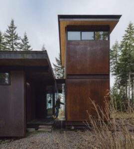 نمای بیرونی با فولاد آبوهوا دیده پایان یافته و دارای شیشهکاری فراخ است که نه تنها ظاهری منحصر به فرد به آن میبخشد بلکه نور طبیعی داخلی را نیز به حداکثر میرساند. فضای داخلی ۳۰۰ فوت مربعی بر روی دو طبقه پخش شده است، با یک طبقه پایین به عنوان فضای اصلی کاری و طبقه بالا به عنوان مکانی دنج و آرامبخش. این طرح نه تنها یک محیط کاری منحصر به فرد ارائه میدهد بلکه نمایشی از خلاقیت و نوآوری در طراحی معماری است.