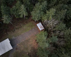 Maxon Studio، واقع در نزدیکی شهر کوچک Carnation، واشنگتن، در کنار خانه Maxon قرار دارد که هر دو توسط Olson Kundig طراحی شدهاند. این دفتر کار، وقتی مورد استفاده نیست، در کنار خانه پارک میشود و سپس برای شروع کار به مکانی انتخابی در جنگل نزدیک حرکت میکند.