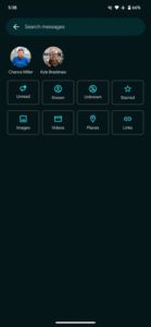 همچنین، شما در اینجا یک میانبر برای متن/گفتوگوهای نشانهگذاری شده خود همراه با فیلترهایی برای Unread، Known ، Unknown، Images، Videos، Places و Links پیدا خواهید کرد.