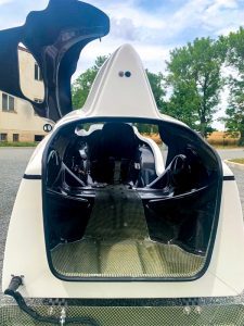 پوسته سبک خودرو از یک ماده کامپوزیتی متشکل از الیاف آرامید و کربن در یک ماتریس اپوکسی ساخته شده است. یک دریچه قفل شونده که از بالا باز میشود، دسترسی به کابین را فراهم می کند. همچنین یک دریچه کوچکتر با بازشو به سمت پایین در عقب، امکان دسترسی به محفظه بار 350 لیتری را فراهم می کند.