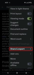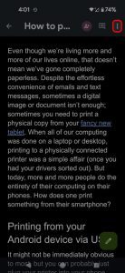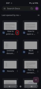 - سند Google Doc مورد نظر را باز کنید و روی نماد ⋮ در گوشه سمت راست بالا ضربه بزنید.