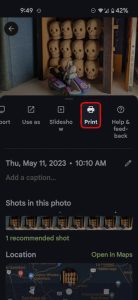 - منوی زیر عکس را به سمت چپ بلغزانید و روی پرینت ضربه بزنید.