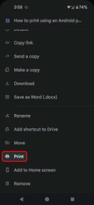- به پایین منوی باز شده مراجعه و روی Print ضربه بزنید