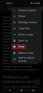 مجموعه نرم افزار آفیس Google Docs رایگان و در هر دستگاه اندرویدی مدرن موجود است. همچنین پرینت از آن آسان است. بدین منظور: