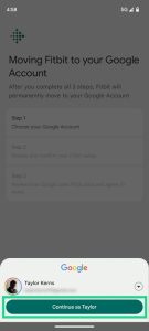 تبریک میگوییم، شما حساب Fitbit خود را به حساب گوگل منتقل کردهاید. از این پس، با استفاده از حساب گوگل خود به اپلیکیشن Fitbit وارد شوید.