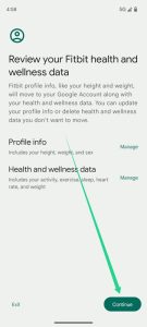 - گزینه Review how Google uses Fitbit data and agree to move را لمس کنید.