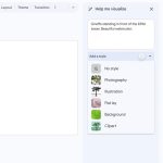 در Google Slides، تصاویر از درخواست‌های متنی با استفاده از هوش مصنوعی مولد تولید می‌شود و در پانل کناری با استفاده از گزینه «Help me visualization» می‌توان سبک مورد نظر خود را از میان موارد none،photography، illustration، flat lay، background و clip art انتخاب کرد. سپس مجموعه‌ای از ۶ تا ۸ طرح متفاوت به همراه  گزینه «View more» نمایش داده خواهد شد.