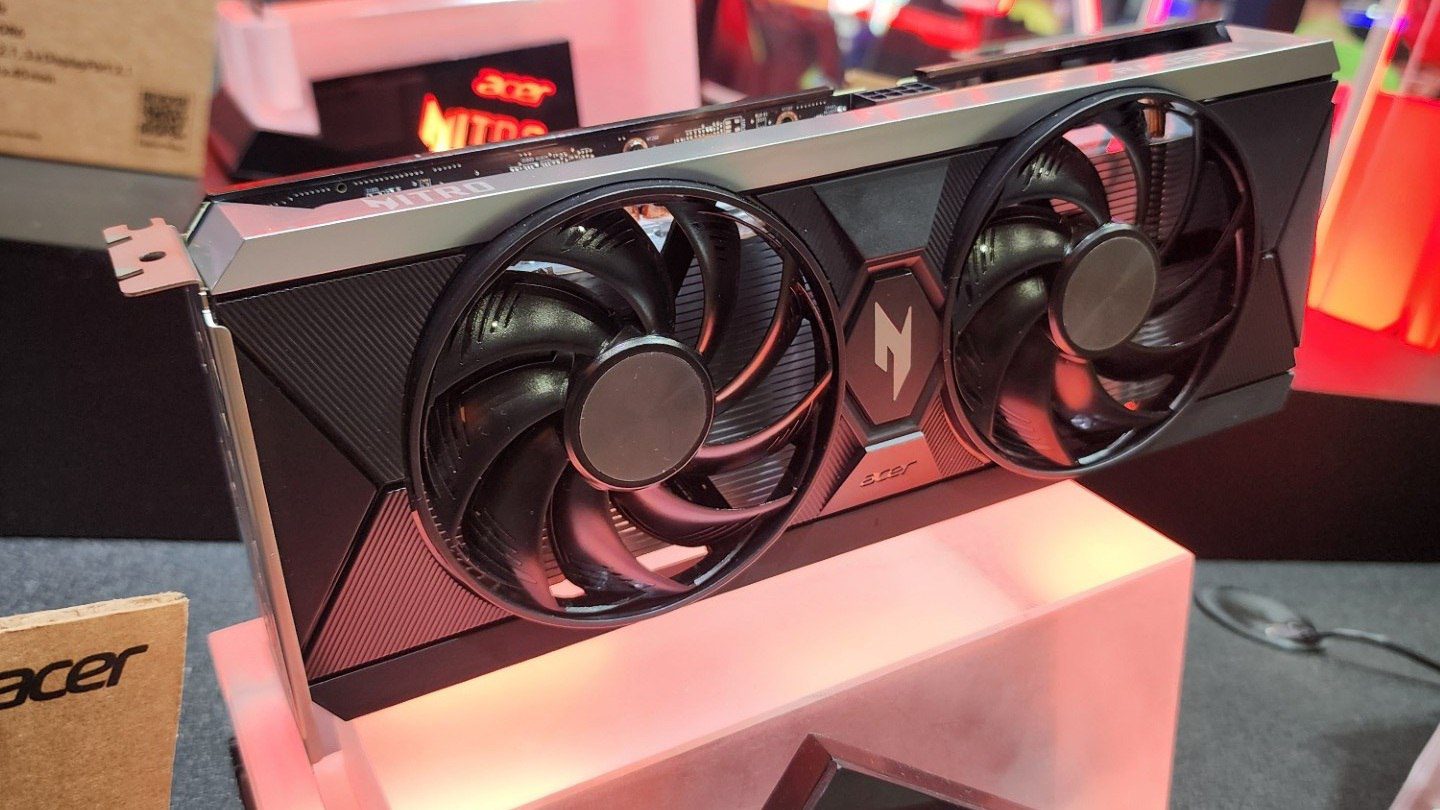 در ادامه، کارت گرافیک Arc B580 Nitro OC White اینتل ایسر معرفی شده که طراحی آن مشابه مدل کارت گرافیک AMD Radeon RX 9060 XT Nitro است؛ اما در رنگ سفید عرضه میشود. این کارت به پردازنده گرافیکی BMG-G21 Battlemage با ۱۲ گیگابایت حافظه GDDR6 و فرکانس کاری تا ۲۷۴۰ مگاهرتز مجهز است. توان حرارتی این مدل ۲۰۵ وات است و انرژی آن نیز ازطریق کانکتور هشتپین تأمین میشود. این کارت دو فن و فرمفاکتور دوشکافه دارد و ابعاد آن ۲۶۸ در ۱۱۳ در ۴۰ میلیمتر است.