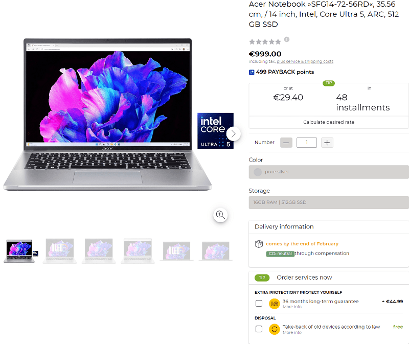 لپتاپهای جدید ایسر که مجهز به پردازندههای پیشرفته Core Ultra سری Meteor Lake اینتل هستند، به تازگی توسط فروشندگان آنلاین در آلمان در لیست فروش قرار گرفته اند.