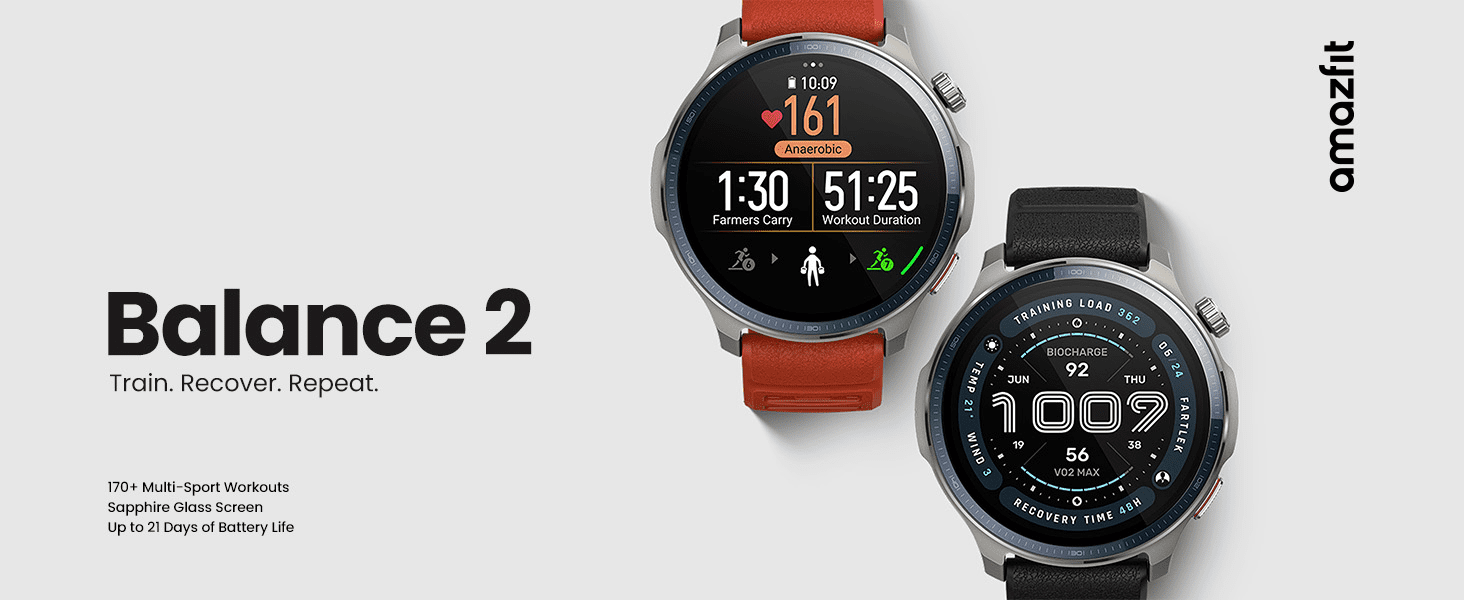 ساعت هوشمند Balance 2 آمازفیت بهعنوان محصولی پرچمدار شناخته میشود. این ساعت به نمایشگر شیشه یاقوتی با روشنایی ۲۰۰۰ نیت و فناوری GPS دوبانده و مقاومت در برابر آب تا عمق 10ATM مجهز است. همچنین بیش از ۱۷۰ حالت ورزشی ازجمله حالت تخصصی HYROX را پشتیبانی میکند.