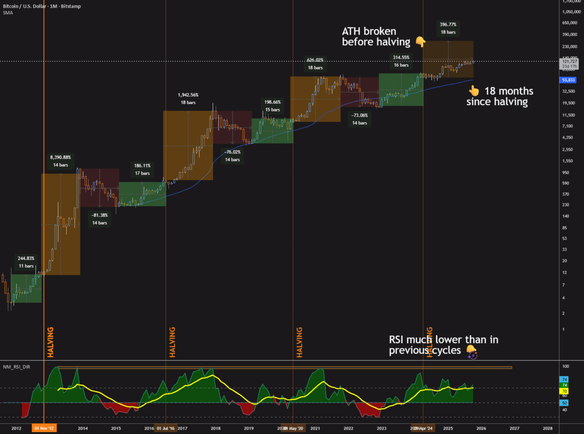 او در ادامه میگوید: چرخه بیتکوین اینبار نشکست، بلکه وارونه شد و اگر تحلیل او صحیح باشد، همان بازار نزولی که همه انتظارش را میکشند، شاید پیشتر اتفاق افتاده باشد.