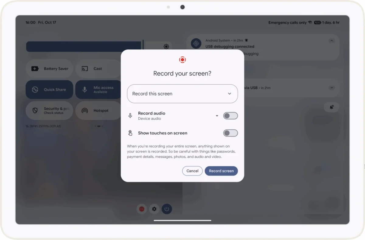 گوگل نسخه پیشرفته ابزار ضبط صفحه در اندروید را برای تبلت ها آماده می‌ کند + تصویر