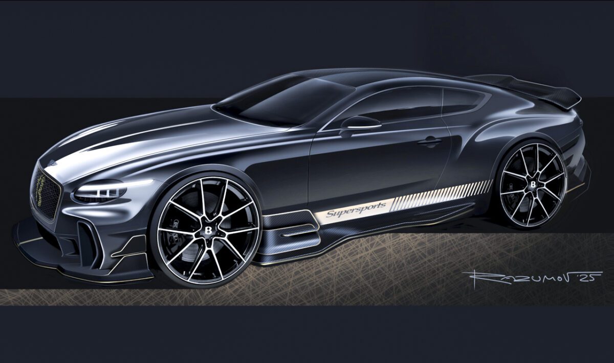 نمای اسکیسی خودرو bently Supersport با خطوط طراحی اغراق‌آمیز