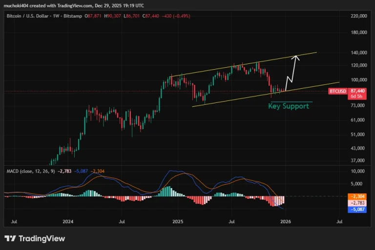 افزایش دوباره تقاضا از سوی سرمایهگذاران بلندمدت، احساسات صعودی را برای روزها و هفتههای آینده تقویت کرده است. در نمودار هفتگی، جفتارز BTC/USD در حال بازآزمایی یک ناحیه تقاضای کلیدی است؛ محدودهای که میتواند زمینهساز بازگشت قیمت و حرکت به سمت ثبت اوج تاریخی جدید شود.