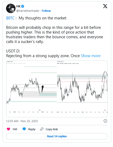 معامله‌گران اکنون با اتکا به چشم‌انداز مثبت میان‌مدت، صعود بیت‌کوین را محتمل‌تر می‌دانند. در همین حال، شمار بیشتری از رؤسای منطقه‌ای بانک مرکزی آمریکا از کاهش نرخ بهره در ماه دسامبر حمایت کرده‌اند که هم‌زمان با انتظار برای اجرای سیاست تسهیل کمی (QE) صورت می‌گیرد.