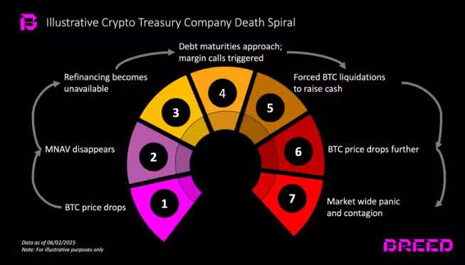 شرکت سرمایهگذاری Breed با انتشار گزارشی هشدار داده است بیشتر شرکتهایی که بیتکوین را به عنوان دارایی خزانه در ترازنامه خود نگهداری میکنند، ممکن است در اصلاح بعدی بازار دوام نیاورند.
