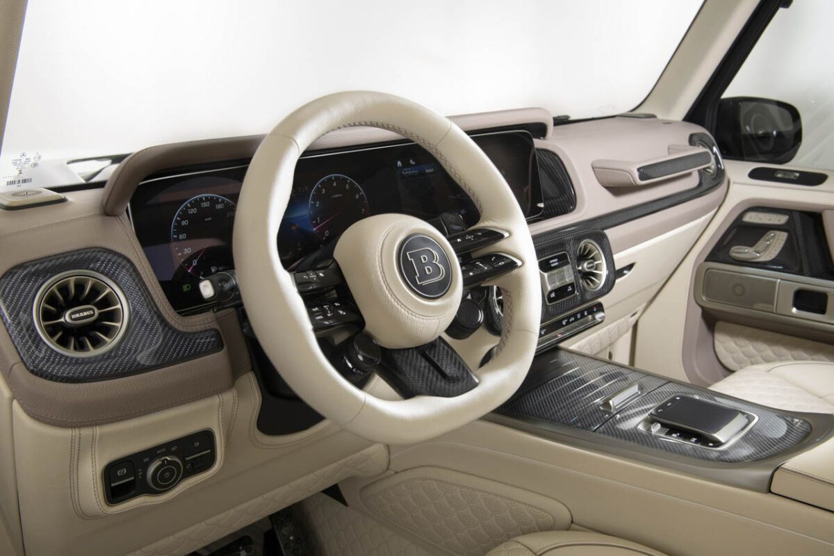 کابین بازطراحی کامل شده است. برابوس از چرم سفارشی با طرح دوخت مخصوص استفاده کرده و تریم فیبرکربن را در بخش‌های مختلف قرار داده است. وجود سیستم Airscarf در قسمت پشت صندلی‌ها باعث می‌شود در حالت باز بودن سقف هوای گرم در ناحیه گردن جریان داشته باشد و رانندگی در دمای پایین راحت‌تر شود. جزئیات فلزی سفارشی و نشان‌های برابوس داخل کابین را از نسخه استاندارد متمایز کرده است.