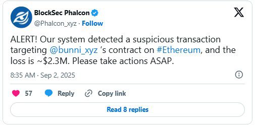 خبر این حمله پس از هشدار یکی از اعضای اصلی تیم بانی با نام کاربری «Psaul26ix» در شبکه اجتماعی X به‌سرعت پخش شد. او خطاب به کاربران نوشت: «اگر دارایی در بانی دارید، فوراً آن را خارج کنید.»