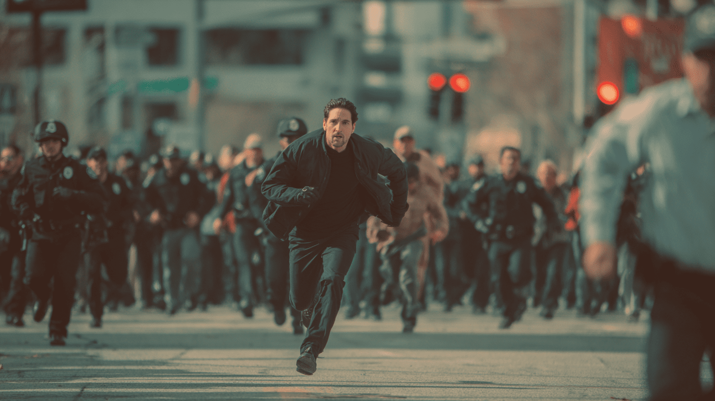 پرامپت دوربین، مردی را دنبال می‌کند که لباس سیاه پوشیده است و با سرعت می‌گریزد، در حالی که جمعیت بسیاری در حال تعقیب او هستند. نما به نمایی جانبی از تعقیب تغییر می‌کند و مرد یک دکه میوه کنار جاده را واژگون می‌کند، دوباره به پا می‌ایستد و به دویدن ادامه می‌دهد. صدای فریادهای هیجان‌زده جمعیت در پس‌زمینه، فضا را پر کرده است.