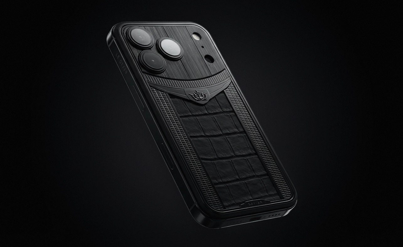 کاویار از آیفون ۱۷ پرو مکس نسخه مشکی با تیتانیوم، چرم کروکودیل و تزیینات طلا پرده‌برداری کرد