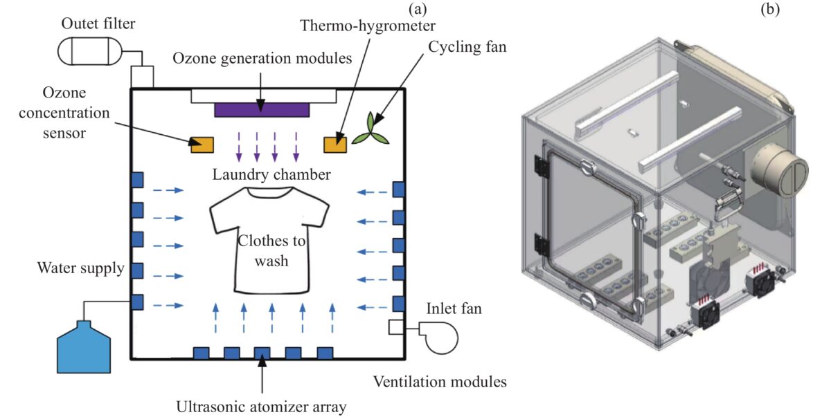 پژوهشگران یک دستگاه جمع‌وجور و مکعبی شکل ساخته‌اند که کمی بزرگ‌تر از یک چمدان است و تنها ۱۲ کیلوگرم وزن دارد. طبق گزارش South China Morning Post، این دستگاه برای شست‌وشوی لباس‌ها از مه و ازن استفاده می‌کند و تقریباً به هیچ آبی نیاز ندارد.