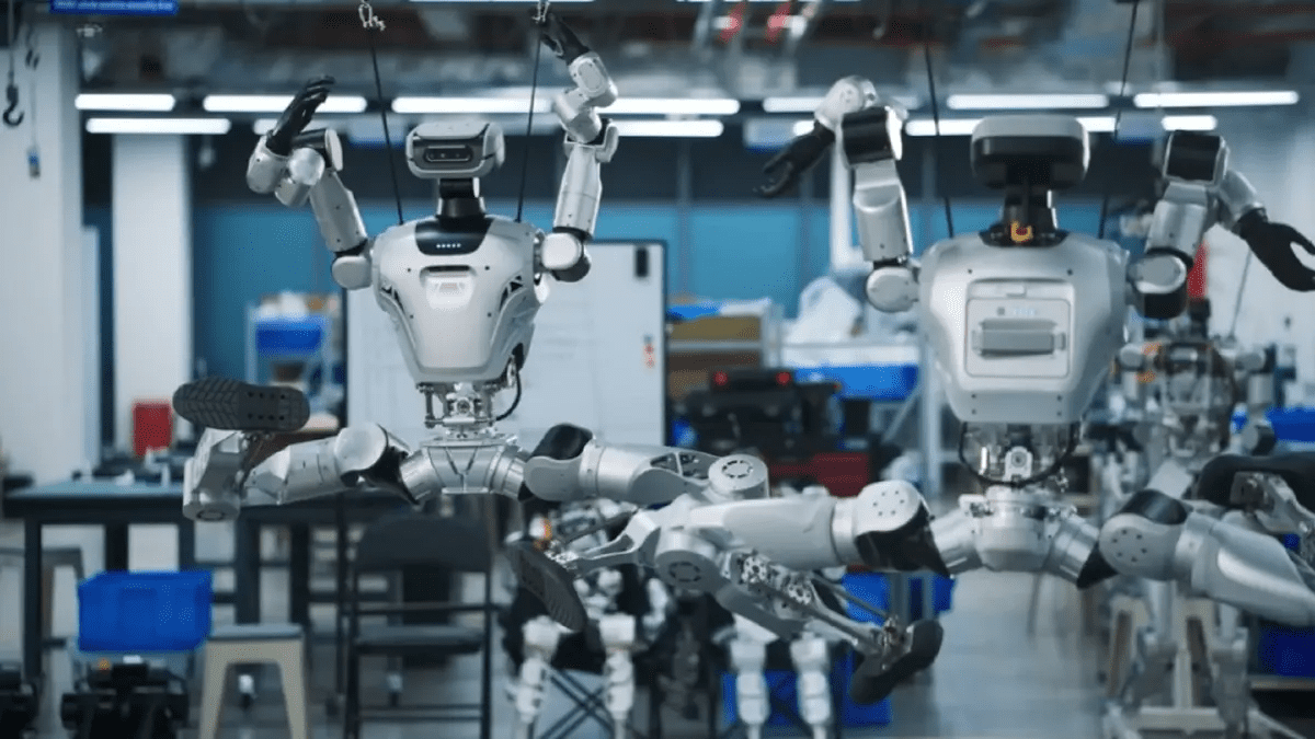 در مرحله بعد، دو ربات انسان‌نمای Oli یک کشیدگی هماهنگ پاها را انجام می‌دهند و کمی به جلو و عقب خم می‌شوند، در حالی که پاهای خود را هم‌زمان از زمین بلند می‌کنند. گرم‌ کردن ملایم آنها به یک تمرین هوایی پویا تبدیل می‌شود؛ جایی که ربات‌ها پاهای خود را بالا می‌برند و با دقت فوق‌العاده‌، چرخشی هماهنگ انجام می‌دهند، سپس به وضعیت اولیه بازمی‌گردند. در پایان، در صحنه‌ای ثبت شده از زاویه‌ای متفاوت در کارگاه شرکت، دو ربات انسان‌نما تمرین اسپلیت معلق را اجرا می‌کنند، در حالی که مستقیم به دوربین نگاه می‌کنند و مهارت‌های حرکتی و کنترل کامل بدن خود را به نمایش می‌گذارند.