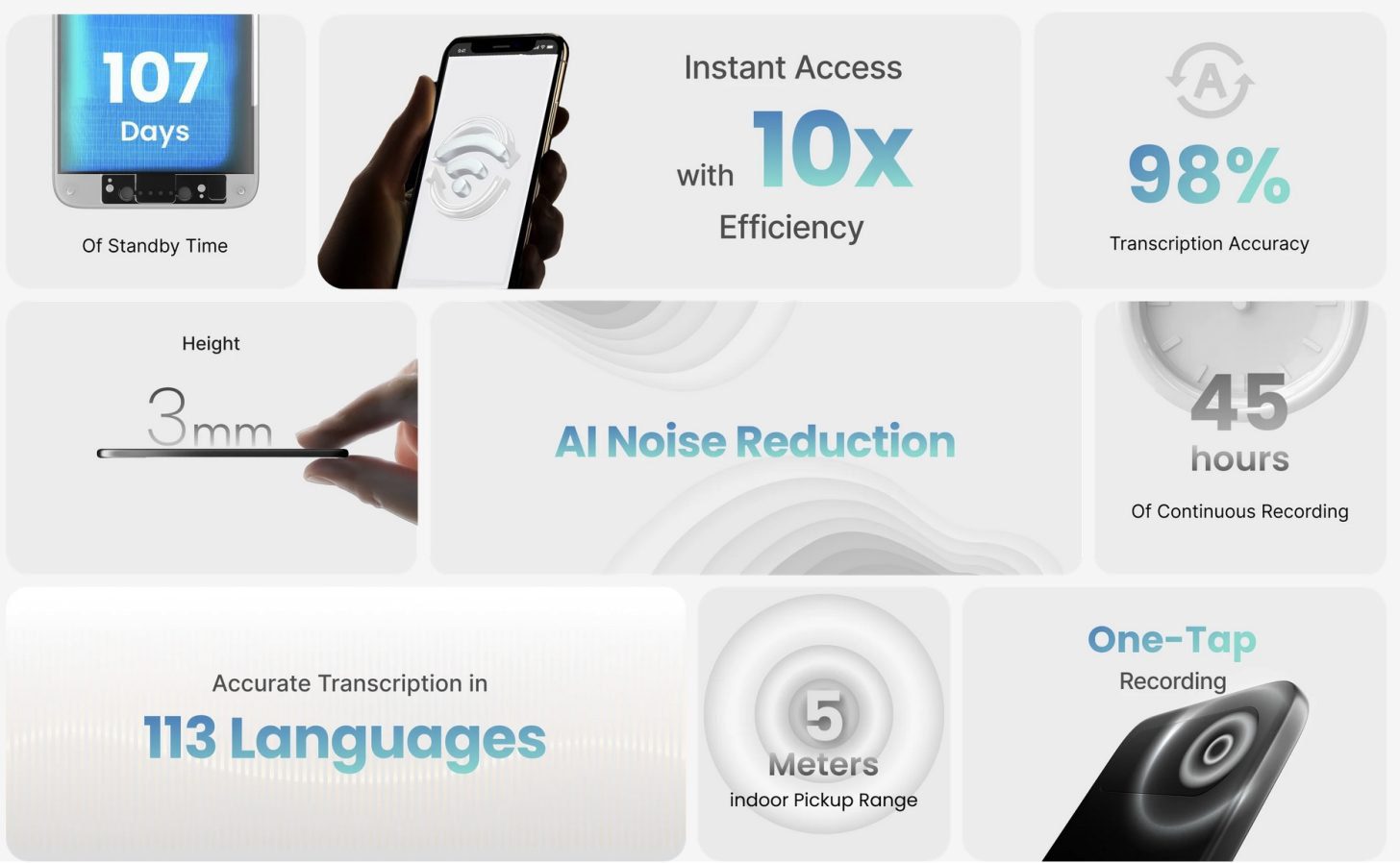 یکی از ویژگیهای برجسته کومولیتیک نوت پرو، ارائه قابلیت رونویسی و خلاصهسازی نامحدود و رایگان است که همراه با خود دستگاه عرضه میشود. این مزیت دستگاه را از بسیاری از ابزارهای مشابه متمایز میکند که اغلب برای دسترسی به این قابلیتها به پرداخت اشتراک ماهانه نیاز دارند. Note Pro میتواند مکالمات را در ۱۱۳ زبان مختلف با دقت کمنظیر ۹۸ درصد به متن تبدیل کند که آن را به ابزاری ایدئال برای تیمهای جهانی و جلسات چندزبانه و محیطهای متنوع تبدیل میکند.
