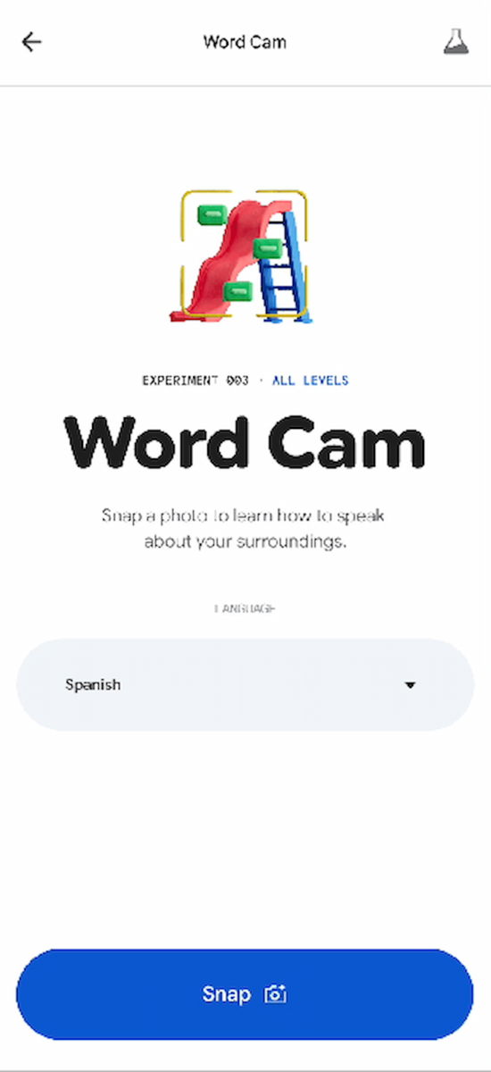آخرین ابزار از ابزارهای جدید هوش مصنوعی گوگل Word Cam نام دارد که به کاربران اجازه میدهد تا با گرفتن عکس از محیط اطراف خود، نام اشیاء را به زبان در حال یادگیری مشاهده کنند. این ابزار علاوهبر شناسایی اشیاء، واژگان اضافی مرتبط را در اختیار کاربر قرار میدهد. گوگل میگوید که این قابلیت میتواند آگاهی کاربران از دامنه واژگانشان را افزایش دهد. برای مثال، ممکن است کاربر کلمه «پنجره» را بداند؛ اما با کلمه «پرده کرکرهای» آشنا نباشد.