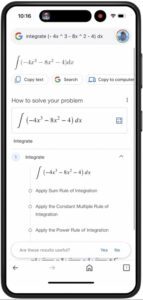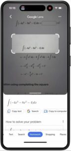 به‌گزارش تک‌ناک، گوگل لنز به حل‌کننده‌ی گام‌به‌گام مسائل ریاضی مجهز است و می‌تواند در انجام تکالیف به شما کمک کند. Google Search اکنون در مثلثات، حساب دیفرانسیل، انتگرال، هندسه و فیزیک بهتر شده است.