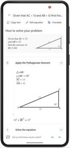 در همین حال، برای هندسه گوگل لنز اکنون می‌تواند هم از جنبه‌های بصری و هم از مؤلفه‌های متنی مسائل مربوط به مثلثات را تفسیر کند. گرفتن عکس جایگزینی طبیعی‌تر برای ایجاد پرسشی نوشتاری است که مسئله‌ی بصری شما را توصیف می‌کند.