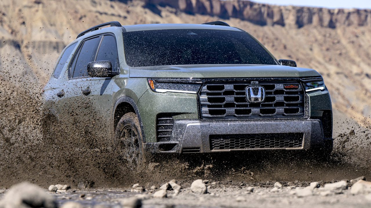 در ظاهر خودرو، تغییرات زیادی دیده نمیشود، اما اجزای اصلی بازطراحی شدهاند. جلوپنجره جدید، بزرگتر و مربعیتر است و چهرهای قدرتمندتر به خودرو میدهد. سپر جلو نیز حجیمتر شده است و ورودی هوای بزرگتری دارد، که ظاهر شاسی بلند هوندا Pilot را جدیتر و مقاومتر نشان میدهد. این تغییرات باعث شده است که مدلهای معمولی هم حالوهوای نسخههای آفرودی TrailSport را پیدا کنند. تفاوت اصلی TrailSport داشتن جلوپنجره خاکستری است. سپر نقرهای در مدلهای EX-L، TrailSport، Touring و Elite دیده میشود و نسخههای Sport و Black Edition سپر مشکیرنگ دارند. بخش عقب خودرو بدون تغییر باقی مانده است، اما دو رنگ جدید بدنه با نامهای Solar Silver Metallic و Smoke Blue Pearl معرفی شدهاند.