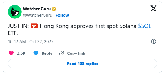 هنگکنگ بهطور رسمی نخستین صندوق قابل معامله در بورس (ETF) مبتنی بر سولانا (SOL) را تأیید کرده و بدین ترتیب، پس از بیتکوین (BTC) و اتریوم (ETH)، سومین رمزارز دارای ETF در جهان لقب گرفته است.